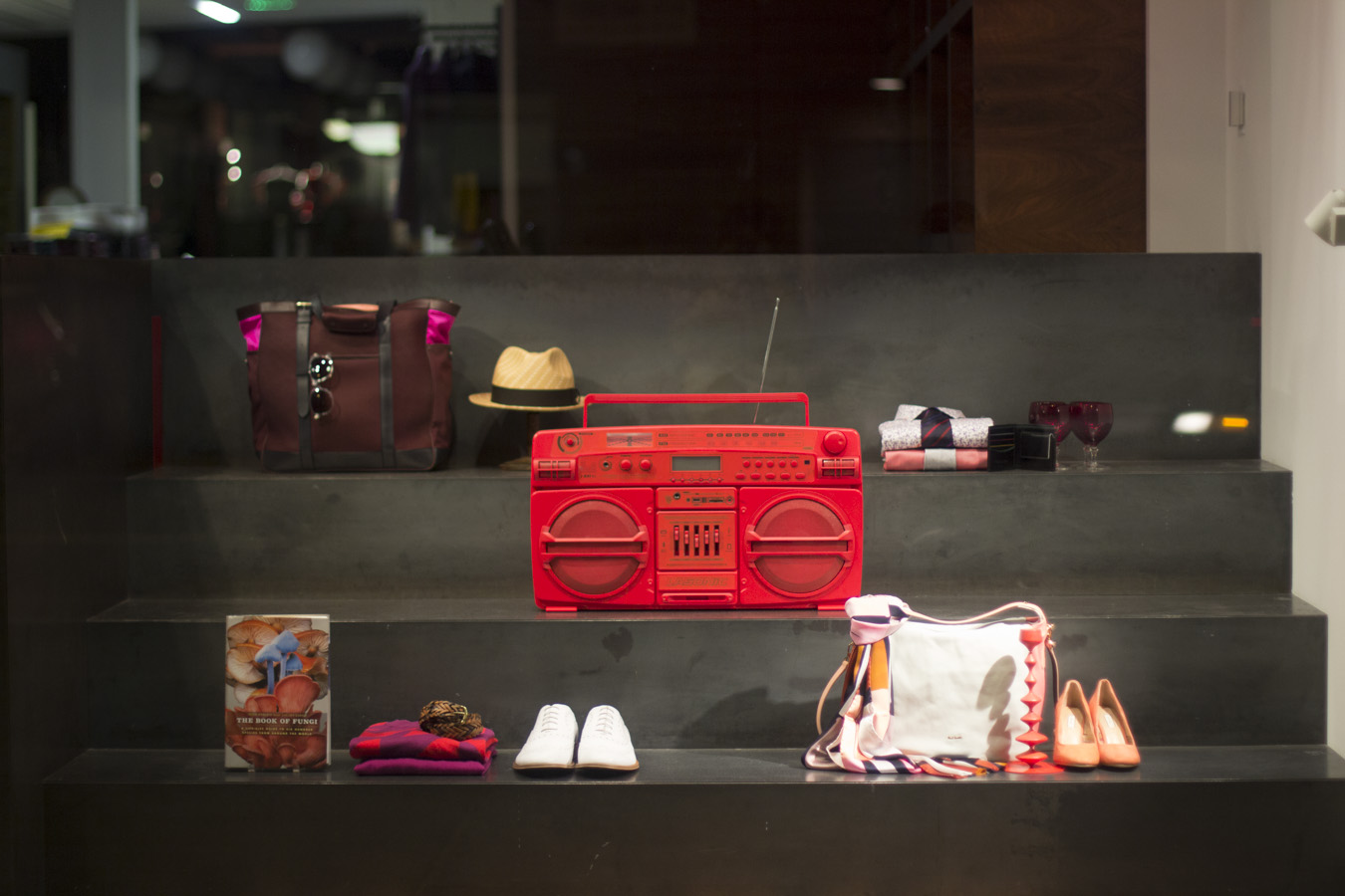 One day during a walk to one of my favorite restaurants past Union Square I was enticed into the fantasy world of window displays and lighted signage. The world of fashion and beautifully designed products and their packaging show off their glamour with the assistance of a variety of lighting. Well-coordinated theatrical lighting become spectacular displays at night. I decided to organize my imagery in three different categories: mannequins, signage lighting, and strange illuminated objects at galleries and retail window displays.